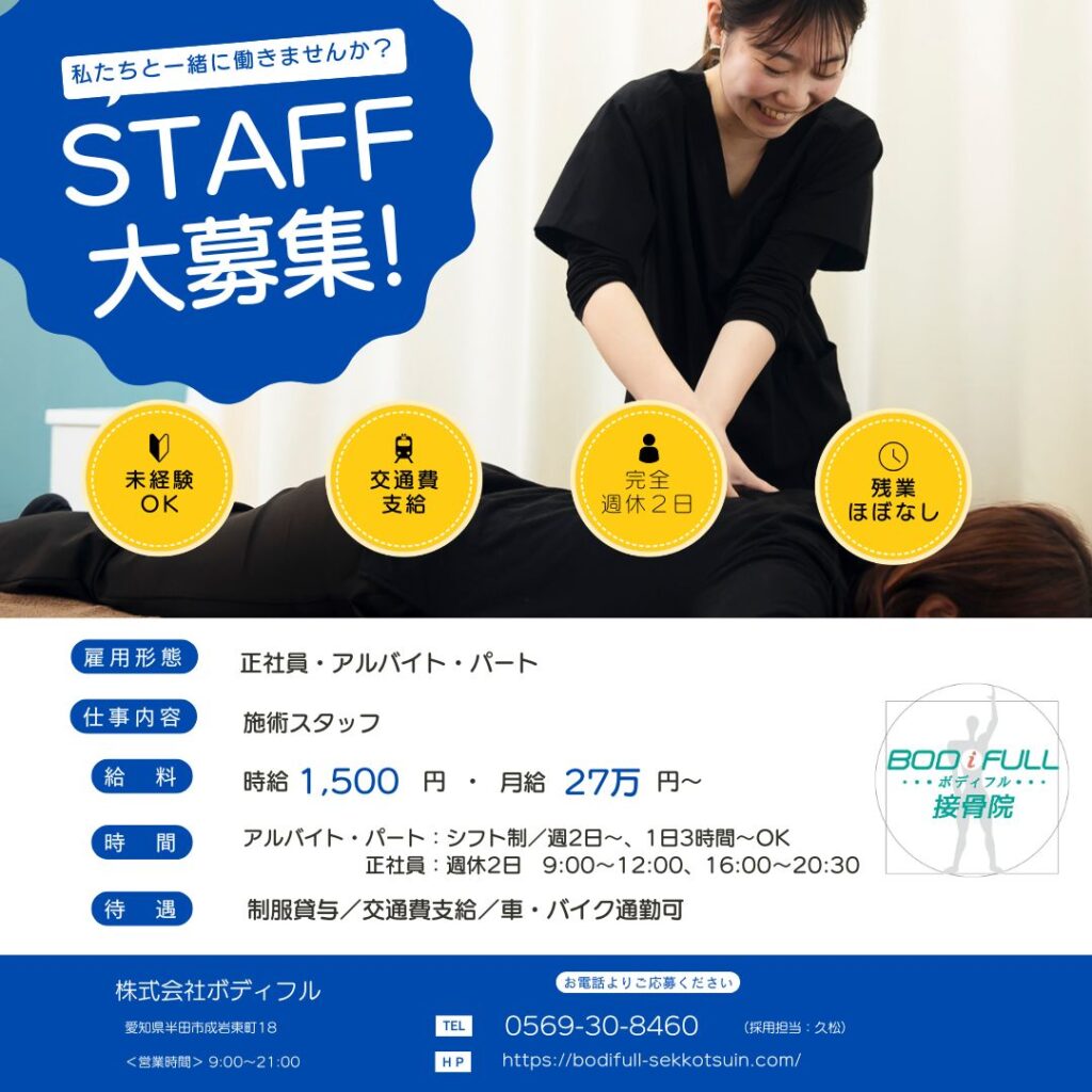 ボディフル接骨院は現在半田市と大府市の2拠点で募集しています。
